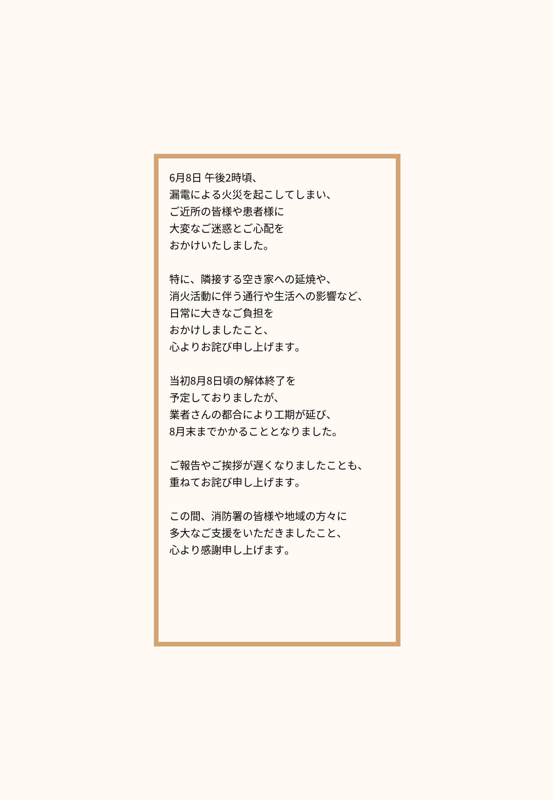 一宮市木曽川町 なかば鍼灸院 火災のお詫び